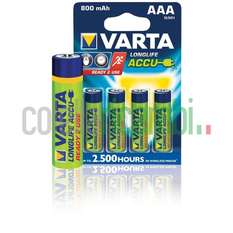 4 Batterie MiniStilo AAA da 800 mAh Ready 2 Use - pronte all'uso: Le Batterie Ricaricabili VARTA Ready to Use sono pre-caricate per un utilizzo immediato