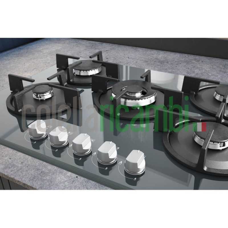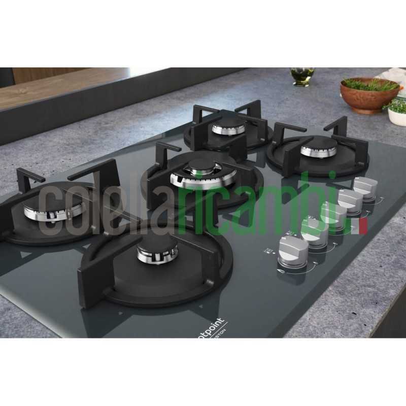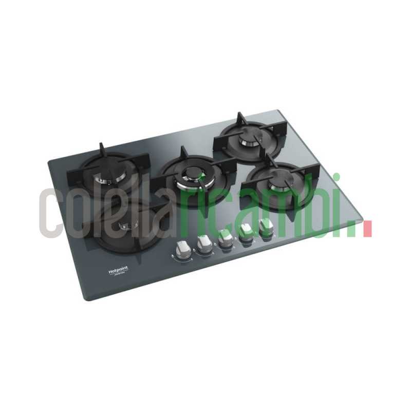 Il piano cottura a gas Hotpoint Ariston HAGD 72S/MR nella colorazione vetro specchio misura 73 cm, dispone di 5 bruciatori gas con sicurezza elettromagnetica per ogni bruciatore e manopole frontali.