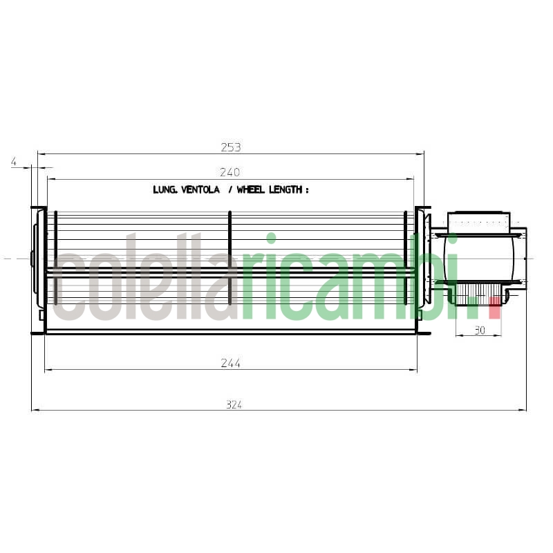 Inoltre le ridotte dimensioni, lunghezza totale 324 mm, dimensioni bocchetta uscita aria: 244x40 mm, consentono al ventilatore tangenziale una più facile adattabilità a diverse applicazioni.