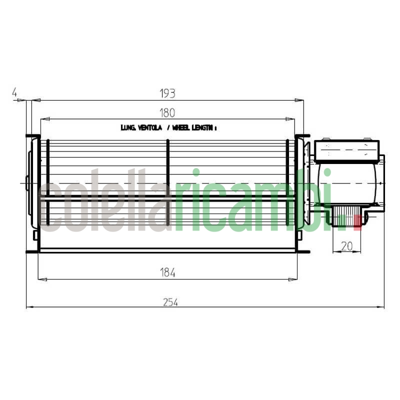 Inoltre le ridotte dimensioni, lunghezza totale 254 mm, dimensioni bocchetta uscita aria: 184x40mm, consentono al ventilatore tangenziale una più facile adattabilità a diverse applicazioni.