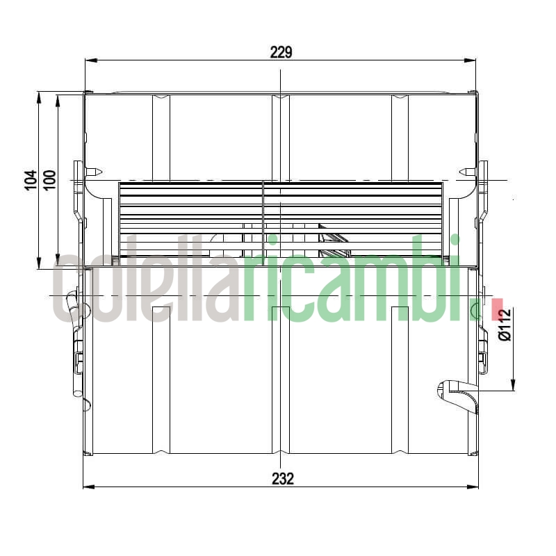 Di dimensioni lunghezza totale 203mm, dimensioni bocchetta uscita aria: 229x100mm.
