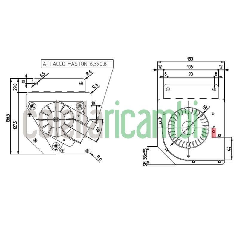 Ventilatore tangenziale  per stufa a pellet TGO 80/1-270/35 EMMEVI - FERGAS 153455, specifico per alte temperature, silenzioso, di dimensioni contenute ed estremamente affidabile.