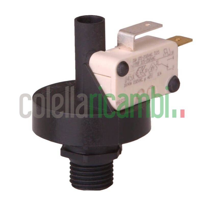 Sensore di pressione (pressostato)  acqua 1 bar con rilevazione in salita; per applicazioni di sicurezza, apre il contatto quando la pressione sale al di sopra della soglia prefissata; viene utilizzato normalmente per sistemi di riscaldamento es. Stufe a pellet idro e caldaie.