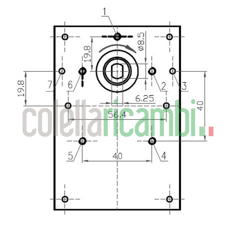 Serie 917, coppia nominale 25 Nm, assorbimento 40 Watt, velocità 5 rpm, rotazione oraria, diametro albero 8,5 mm, pacco lamellare da 40 mm, alimentazione 220 V AC - 50/60Hz.