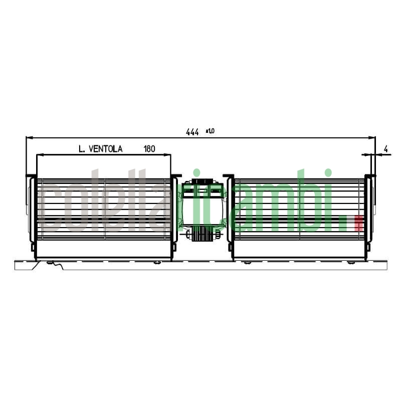 Inoltre le ridotte dimensioni, lunghezza totale 444mm, consentono al ventilatore tangenziale una più facile adattabilità a diverse applicazioni.