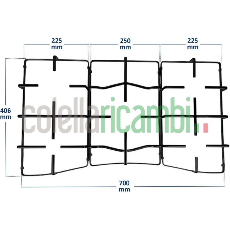 Misure DX/SX precise – Griglie laterali con dimensioni 406×225 mm e lato corto 380 mm, progettate per adattarsi perfettamente alle guide originali del piano cottura, garantendo un appoggio sicuro e duraturo.